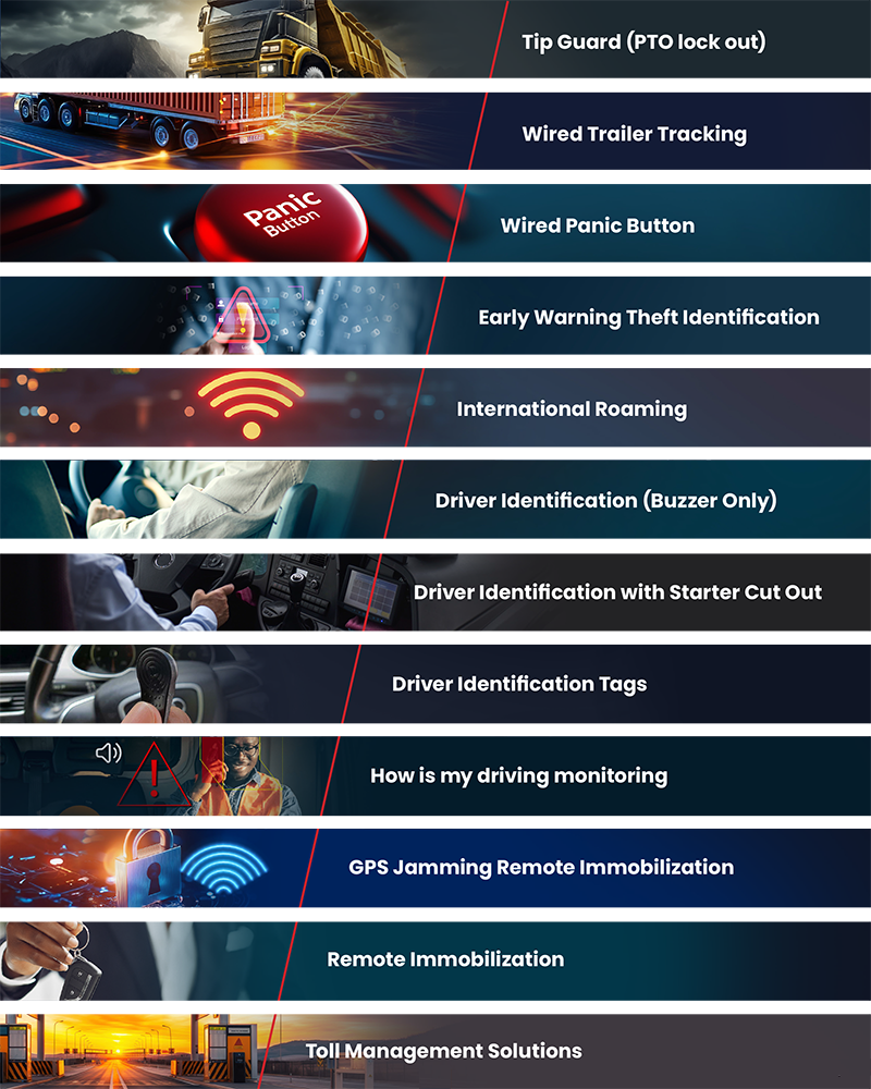 Full array of comprehensive vehicle reporting which includes but is not limited to vehicle activity reports, maintenance and licensing reminders, driver behaviour reporting and geo fence reporting to name a few